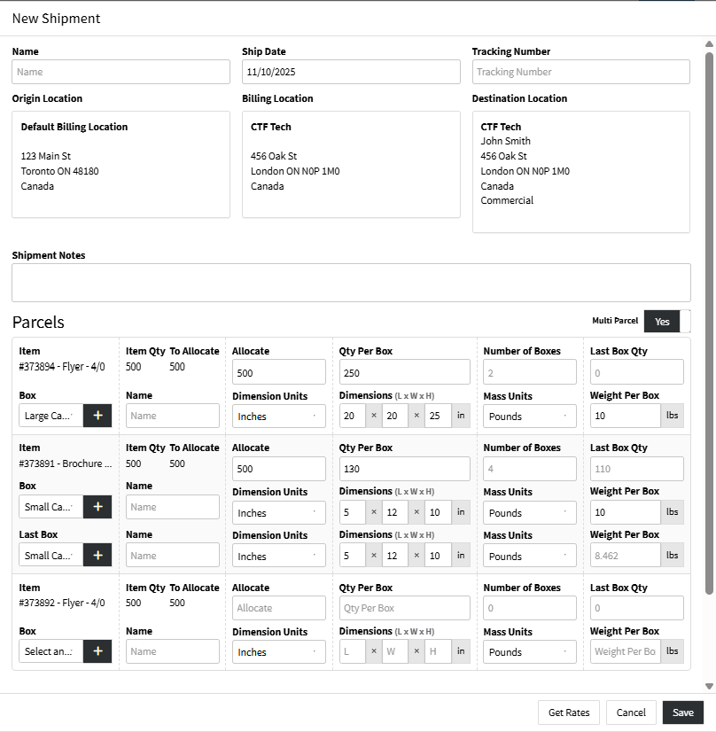 • A separate parcel system for items to be shipped in bulk in individual boxes